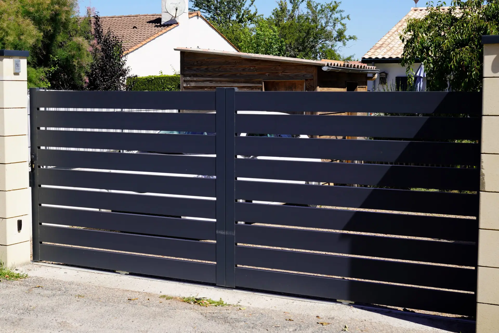 - Sliding Gates: Sliding gates are designed for properties with limited space that cannot accommodate the swing of traditional gates. They slide parallel to the fence or wall, offering a practical yet modern solution. Therefore, ideal for urban homes or commercial properties, sliding gates maximize space while maintaining strong security measures.